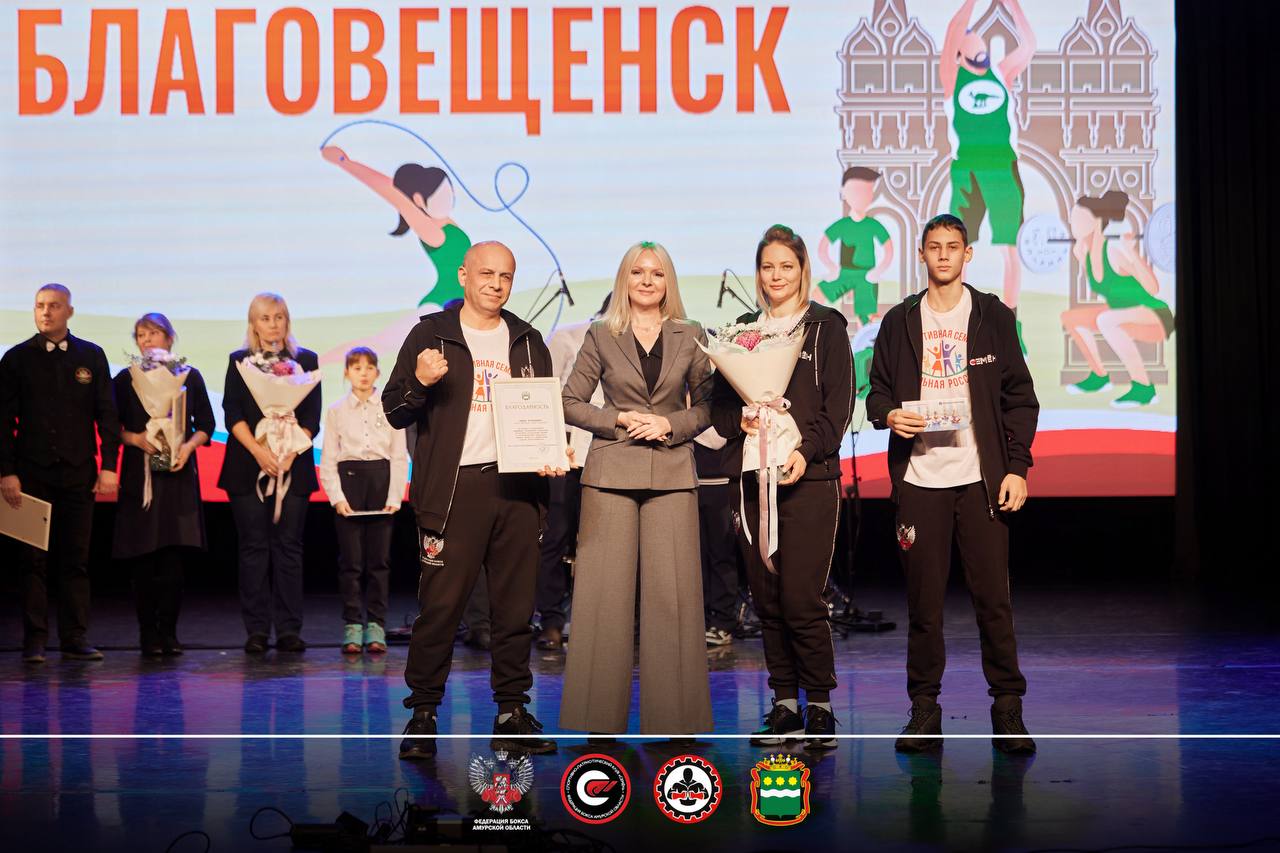 В рамках городского спортивного форума «Спорт - норма жизни» сегодня администрация города Благовещенска наградила семью Романа и Елены Куханевич за за вклад в укрепление семейных спортивных традиций, достойное воспитание детей и популяризацию здорового образа жизни на территории города Благовещенска.